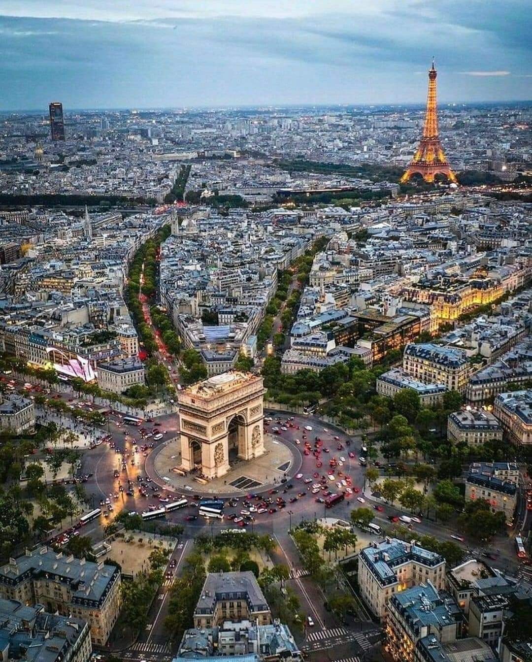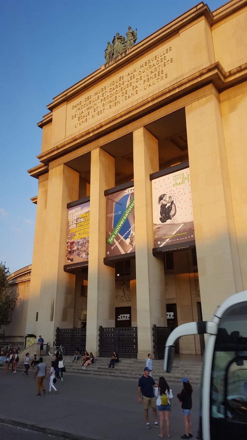 트로카데로궁(place du Trocadero), 샤이오 궁(Palais de Chaillot), 인류박물관(Musée de l'Homme)등이 있는 트로카데로 광장에서 본 에펠탑