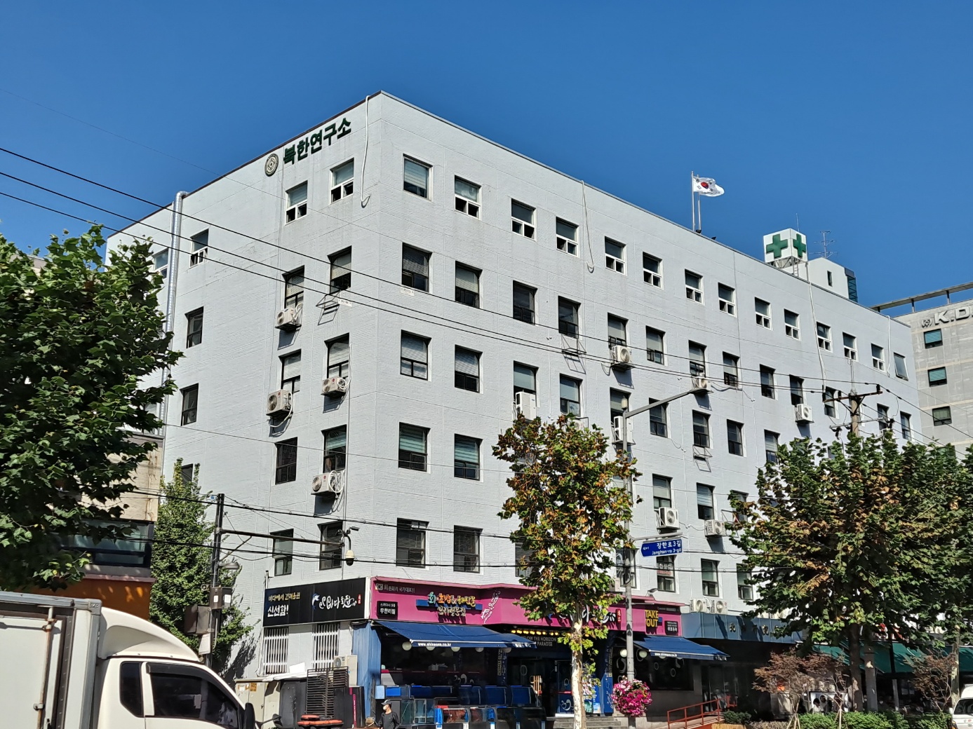 장한평역 부근 : 북한연구소, 장한평역 2분 출구, 1971년 중앙정보부 심리전국의 외곽단체로 창립, 1978년 민영화, 1984년 동대문구 장안동 사옥 준공 이전