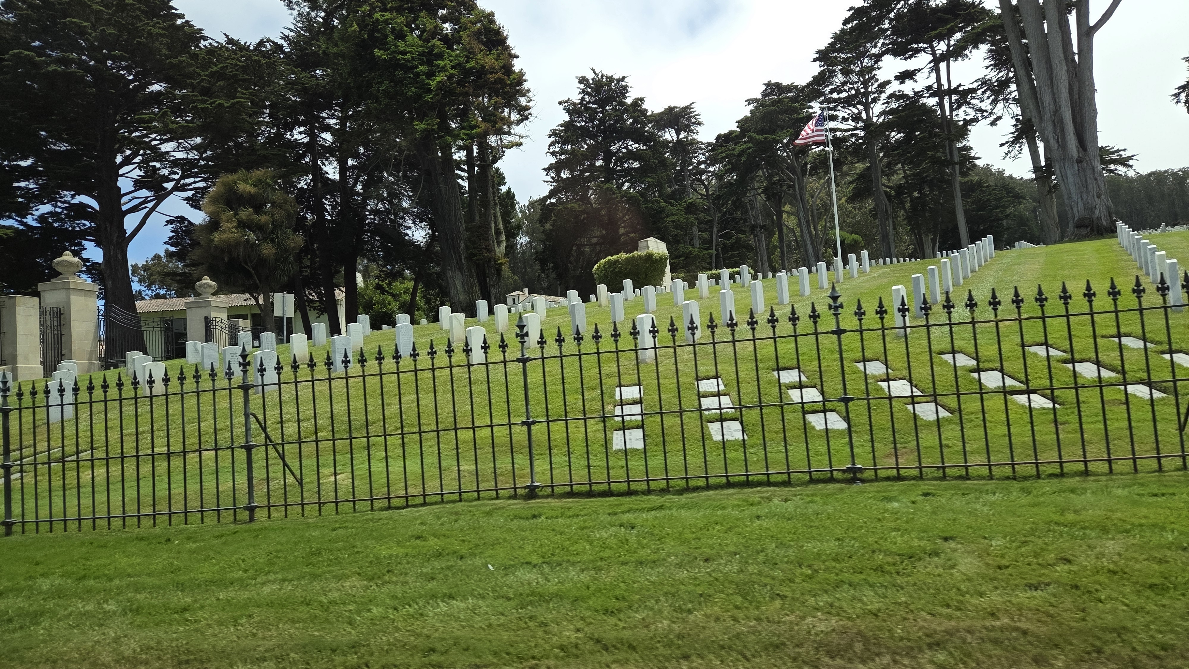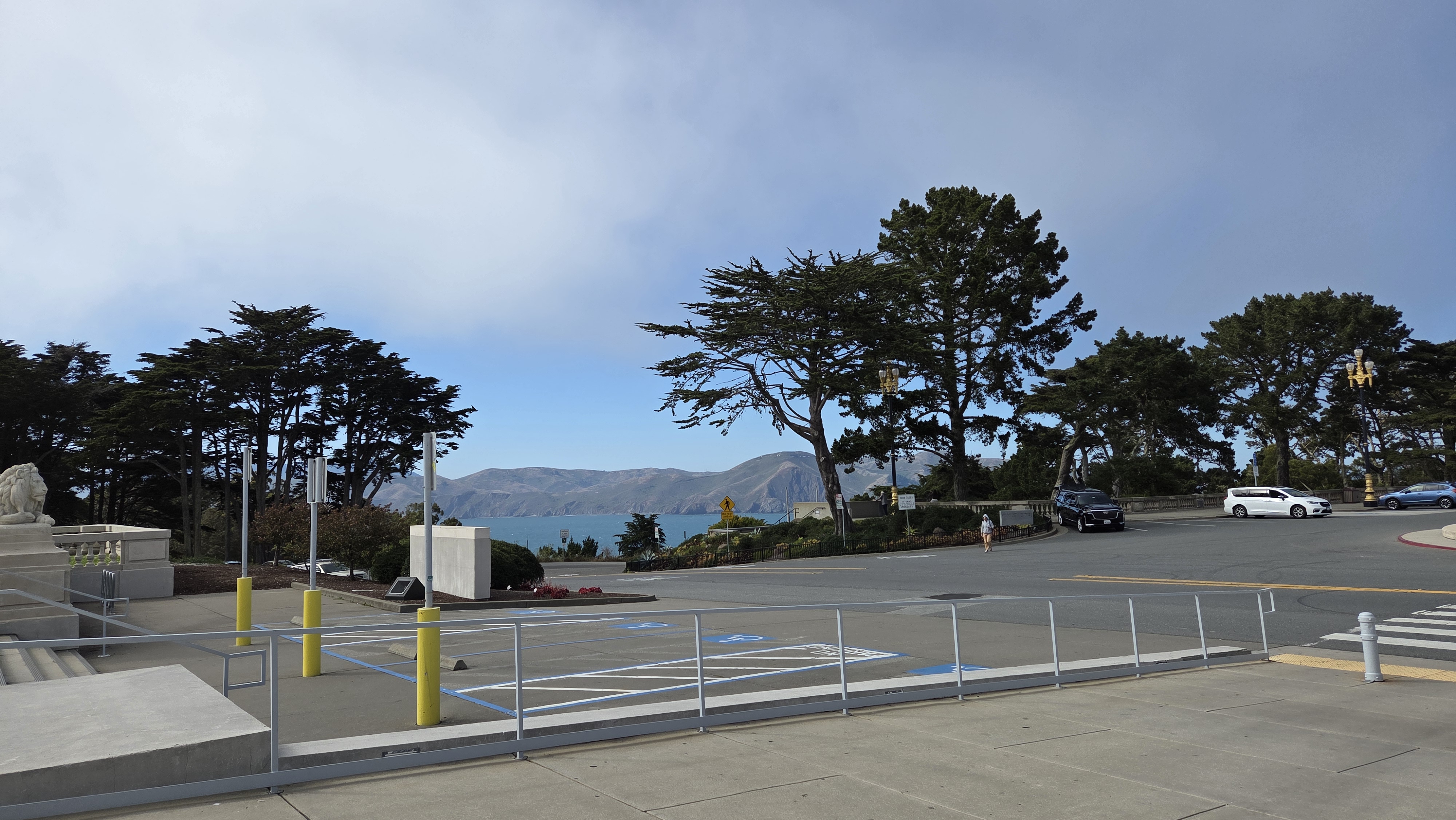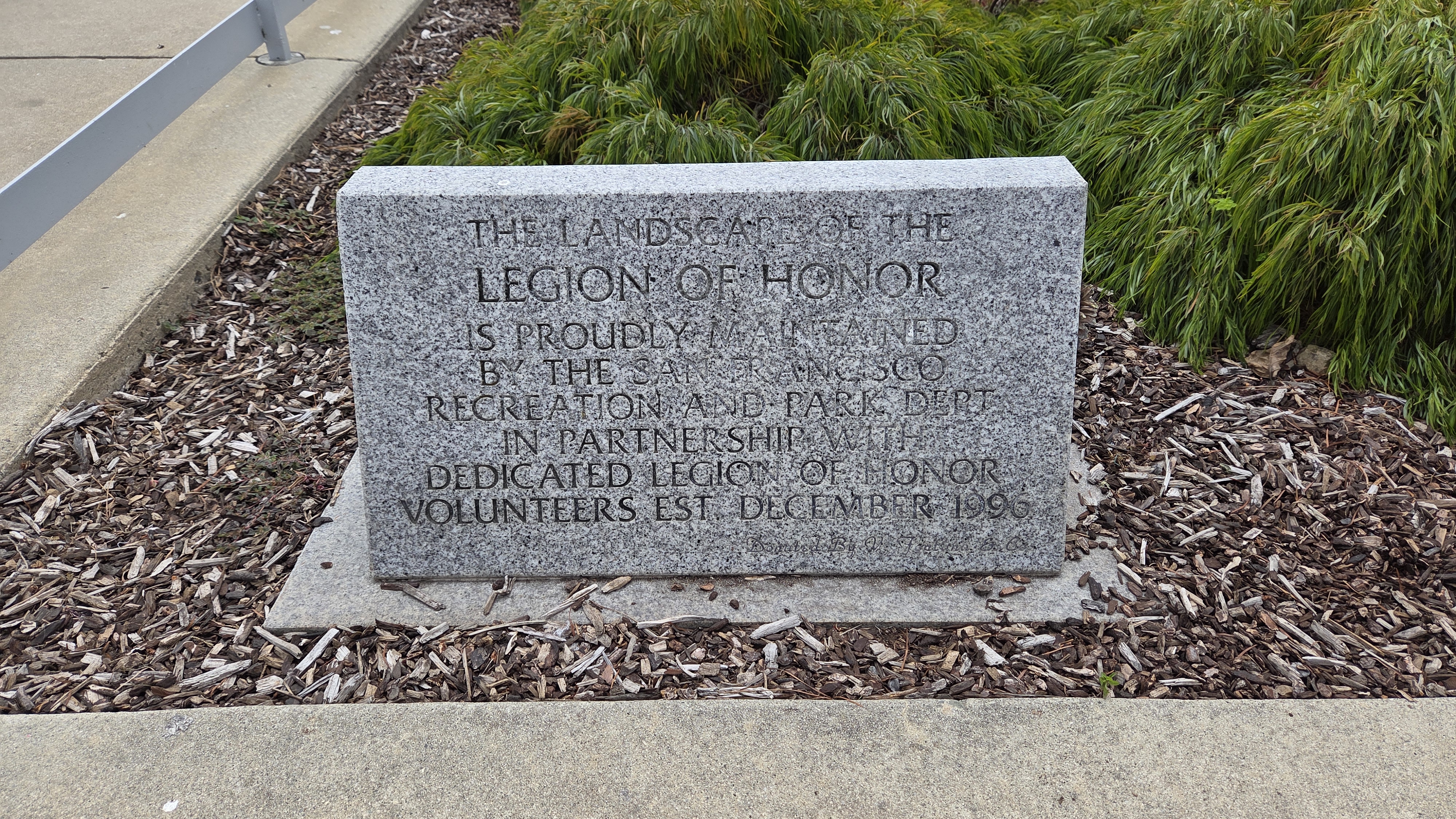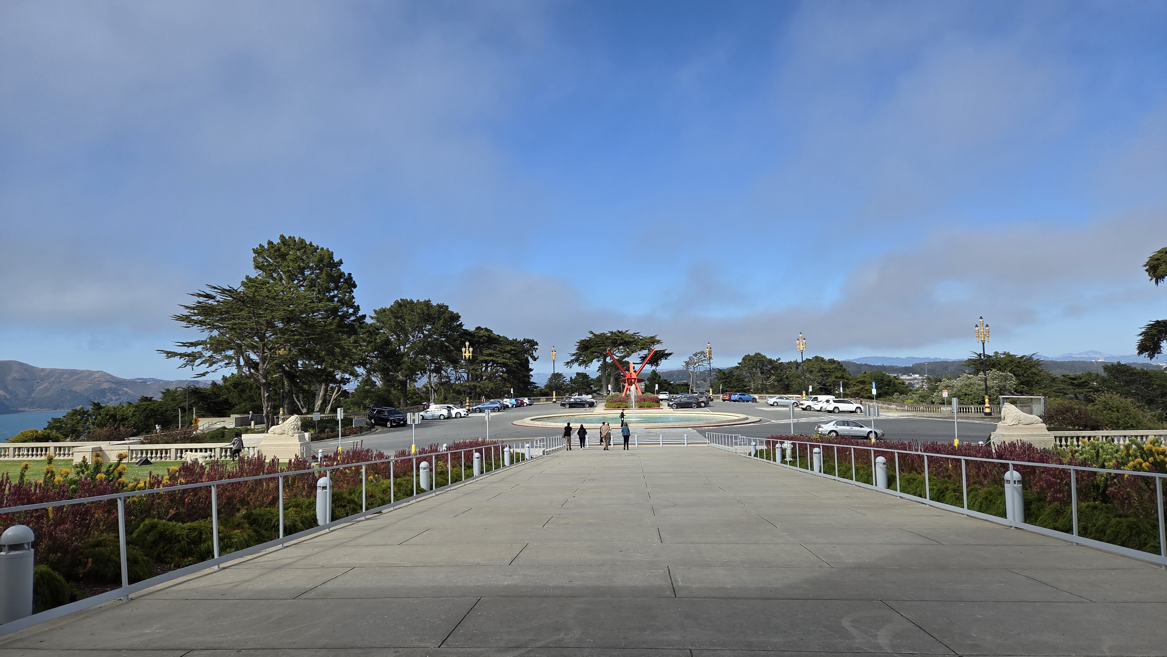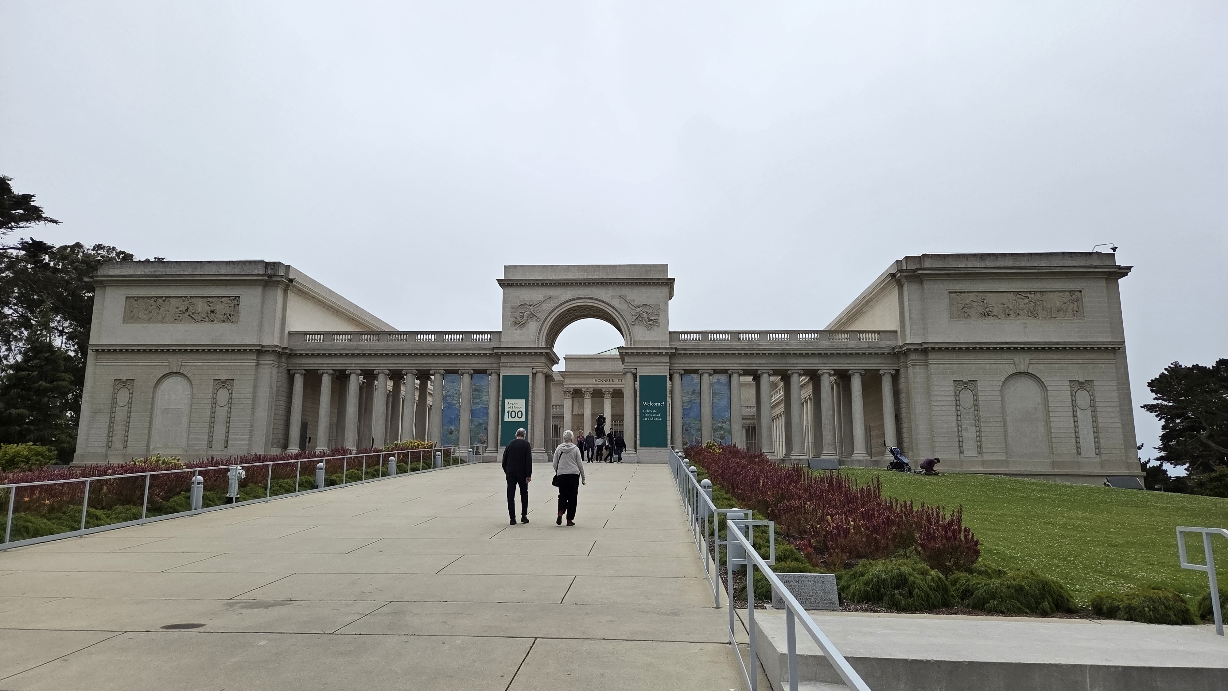 리전 오브 아너(Legion of Honor) 입구에는 미술관을 바라보면 오른쪽에 20세기 초 뉴욕의 가장 저명한 조각가 중 한 명이었던 미국의 조각가 안나 하얏트 헌팅턴(Anna Hyatt Huntington, 1876 – 1973)이 제작하고 1927년에 제작한 스페인 발렌시아의 통치자 엘 시드 캄페아도르(El Cid Campeador, 본명 로드리고 디아스 데 비바르, Rodrigo Díaz de Vivar, 1040~1099) 동상이 서 있고, 왼쪽에 프랑스의 수호성인 잔 다르크(Jeanne d'Arc, Joan of Arc, 1412~1431) 동상이 세워져 있다. 동상은 정면으로 골든 게이트(Golden Gate) 조망 장소로 유명한 소살리토 남쪽의 회색의 높은 언덕인 마린 헤드랜(Marin Headlands)와 골든 게이트(Golden Gate)로 들어가는 태평양이 보인다.